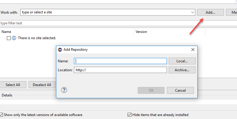 On the Available Software window, click the Add to display the Add Repository popup.