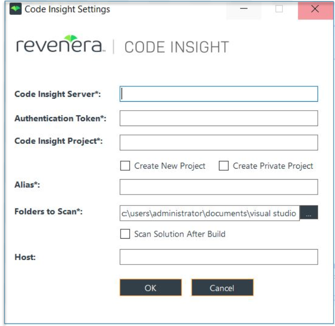 Folders to ScanThe auto-generated list of codebase folders to scan, based on the current output configuration of the Visual Studio project. To append additional codebase folders to scan, specify their absolute paths, separating each with a comma.