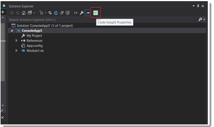 2. In the Solution Explorer toolbar, click the Code Insight Properties icon .